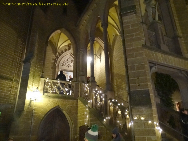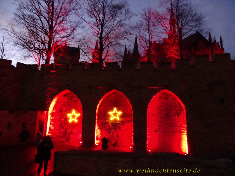 An den ersten zwei Adventswochenenden findet der Königliche Weihnachtsmarkt statt. Geboten werden in der beeindruckenden Kulisse Kunsthandwerk und Kulinarisches. Es herrscht natürlich ziemlicher Betrieb. Wer den Auf- und Abstieg zu Fuß macht, sollte gute Kondition haben. Von ganz Unten geht es ansonsten zuerst mit einem großen Shuttlebus los und auf halber Höhe erfolgt der Umstieg in einen kleinen. Dort heißt es schon mal länger Schlange stehen. Am Umstiegs Platz gibt es aber reichlich Essen und Trinken. Oben wird man dann mit der schön illuminierten Burg, toller Aussicht und dem Weihnachtsmarkt belohnt.
